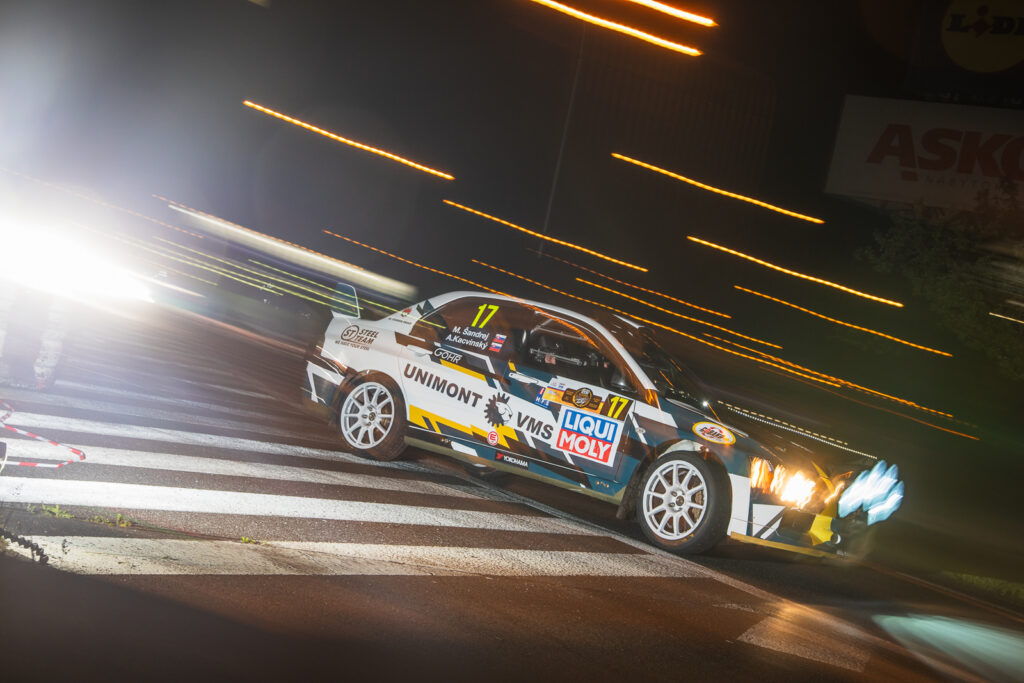 Lancer Evo IV. So stratou 11,6 sekundy sú na druhej pozícii dvojica Lukáš